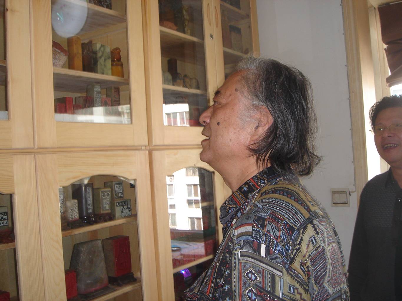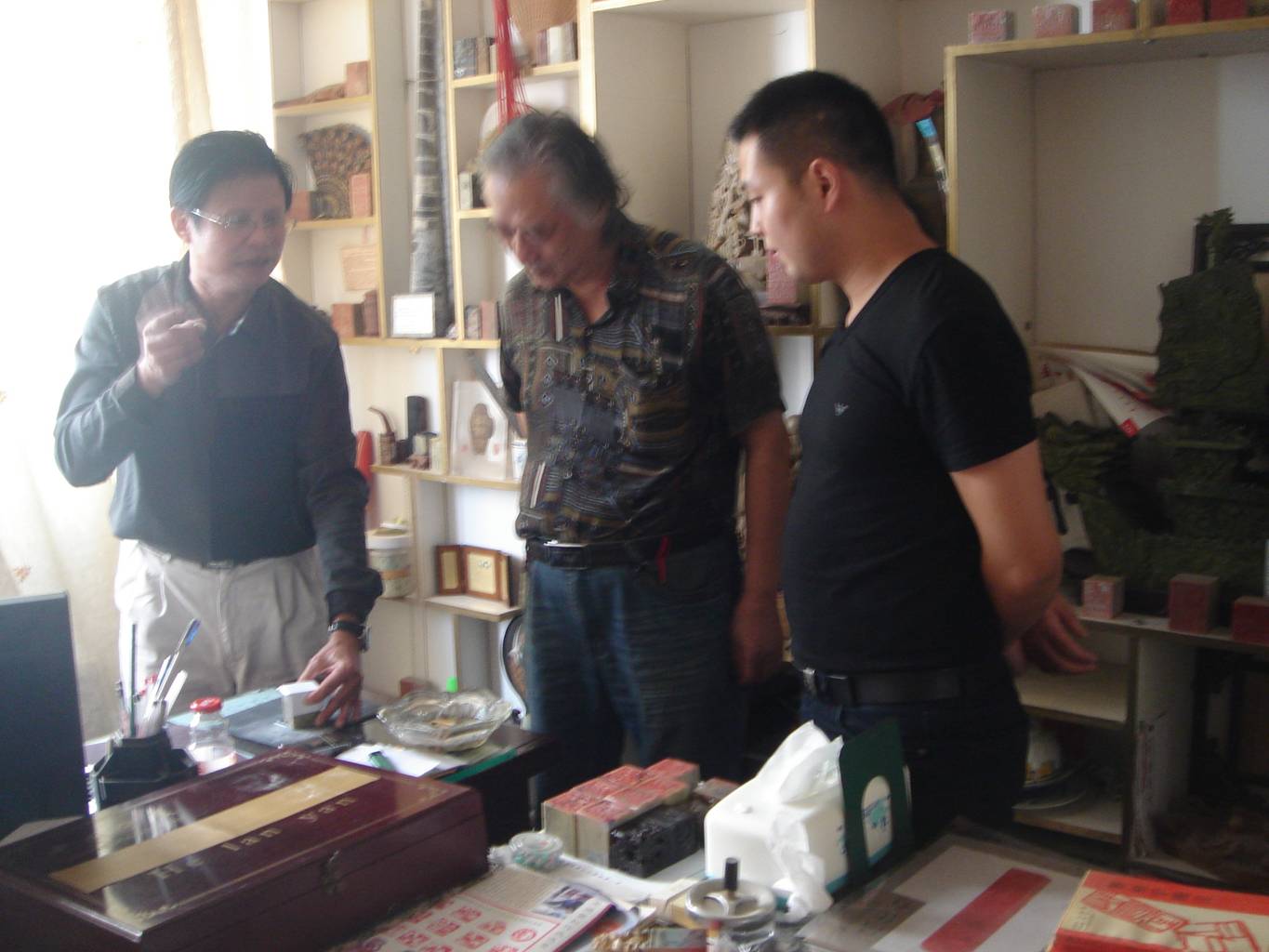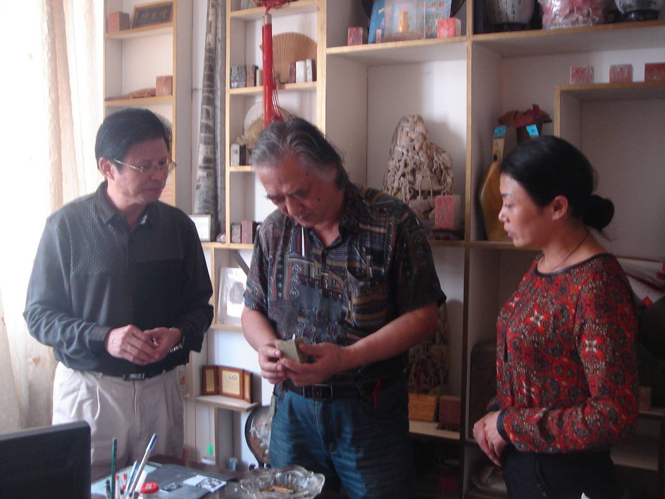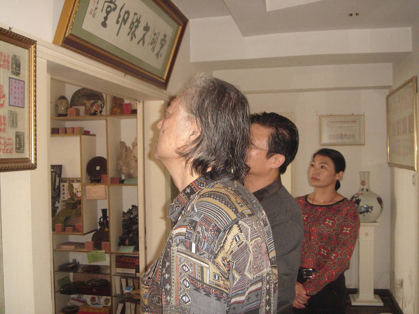 中国著名书法家孔可立教授参观宋斌教授主持的东湖文殊印堂并互赠