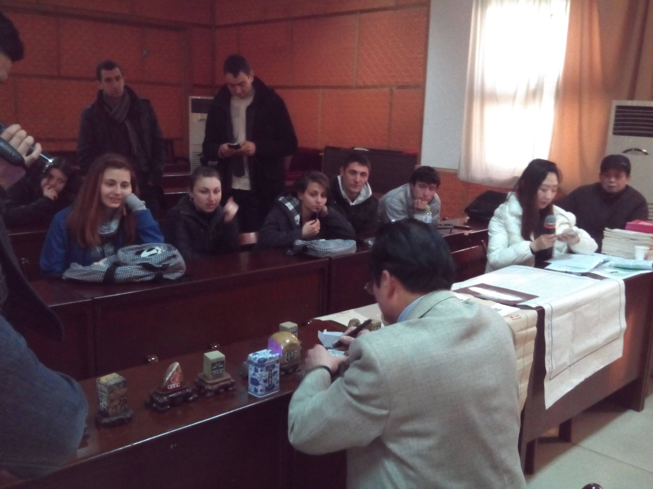 摘要:宋斌教授应邀,为中国地质大学留学生和孔子学院的外国学生主讲了题为----篆刻艺术课程,课后,宋斌教授与部分学生合影留念。