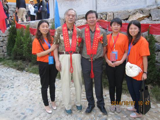 宋斌教授和中国著名书法家孔可立在庆典法会上与湖北蹑影文化传媒