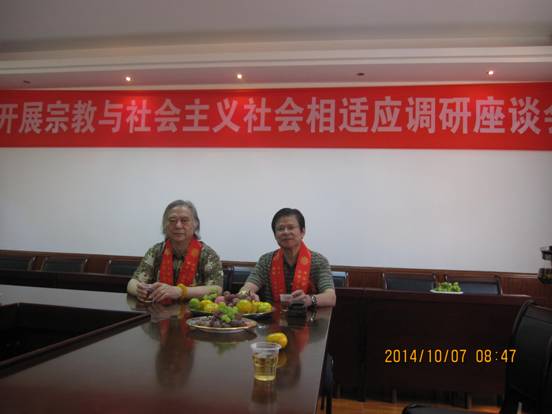 宋斌教授与中国著名书法家孔可立在庆典法会座谈会上合影